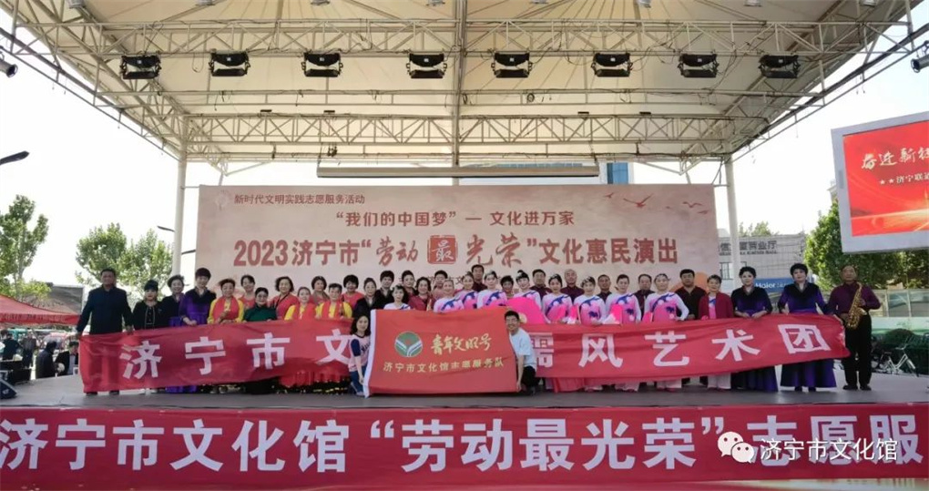 4月29日,为弘扬志愿服务精神,保障广大市民游客在节日期间感受“孔孟之乡运河之都文化济宁”的深厚魅力,进一步营造欢乐喜庆、平安祥和的节日氛围,由济宁市文化和旅游局主办,济宁市文化馆 济宁剧院管理公司承办的2023济宁市“劳动最光荣”文化惠民第一场(儒风艺术团)演出在运河文化广场“市民大舞台”成功举办。